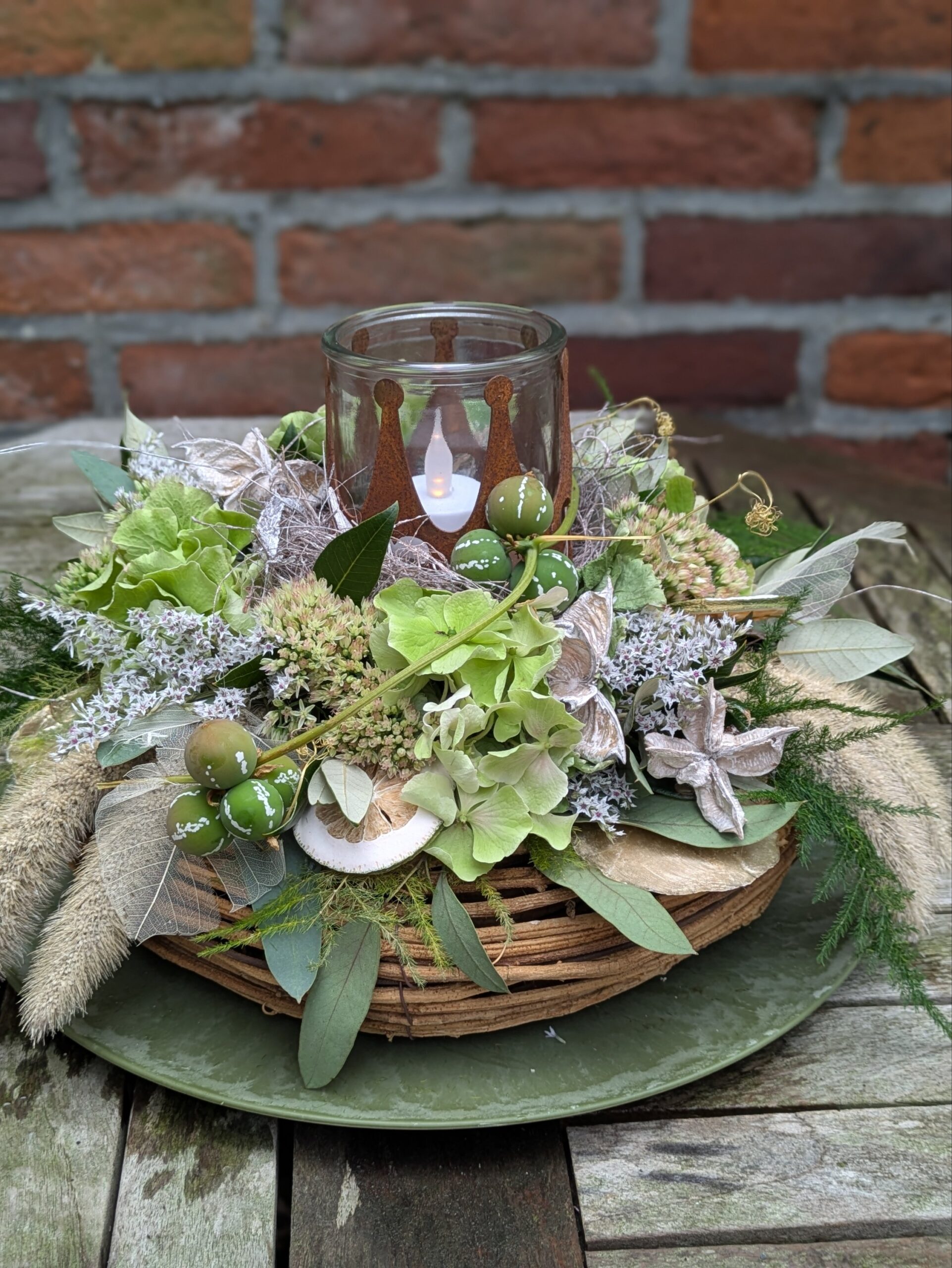 - Verse en droogmaterialen zoals steeneik, eucalyptus, hortensia, Dyplo slinger, asparagus en sedum