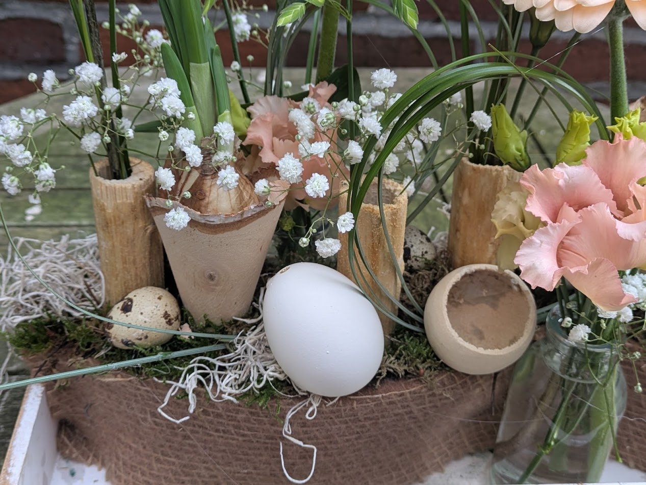 Op veler verzoek! Licht Lucht Lente in een compacter formaat (40cm) met dezelfde verfijnde uitstraling. Het stuk heeft dezelfde zachte kleuren en natuurlijke basis als het grote pakket en is een speelse compositie van mos, houten elementen, verfijnde vaasjes en frisse voorjaarsbollen. De combinatie van zachte pasteltinten, frisse voorjaarsbollen en luchtige bloemen zorgt voor een elegante en speelse uitstraling.