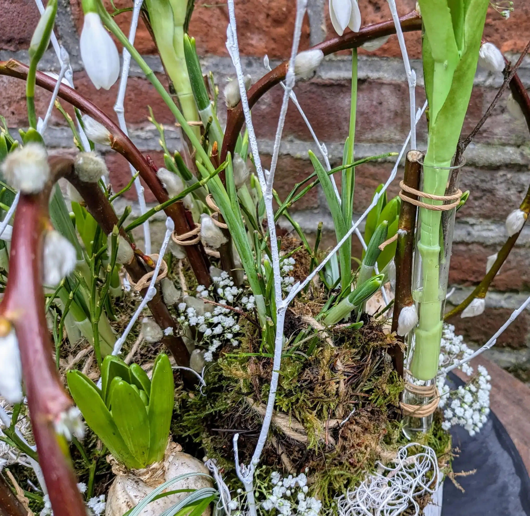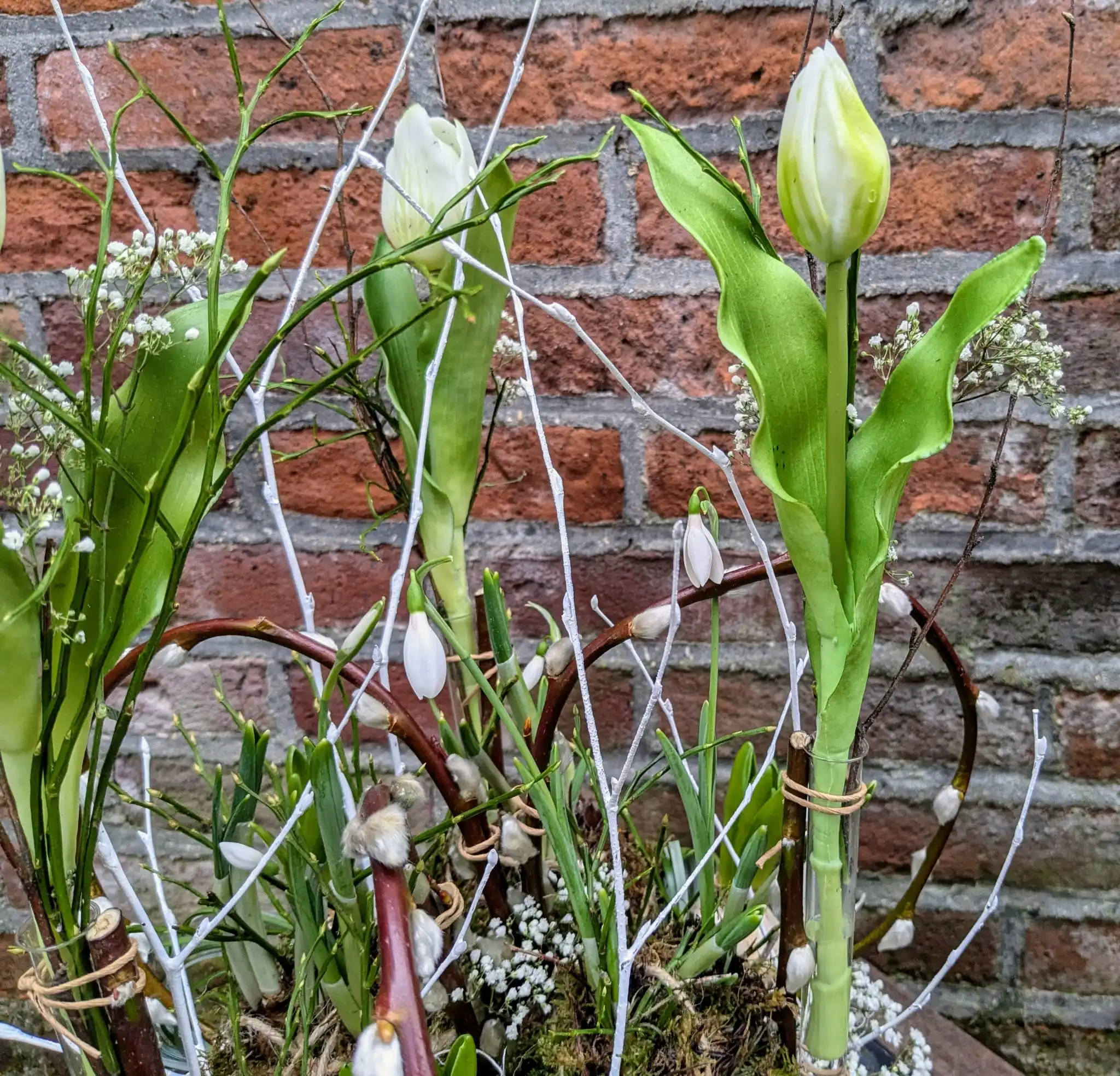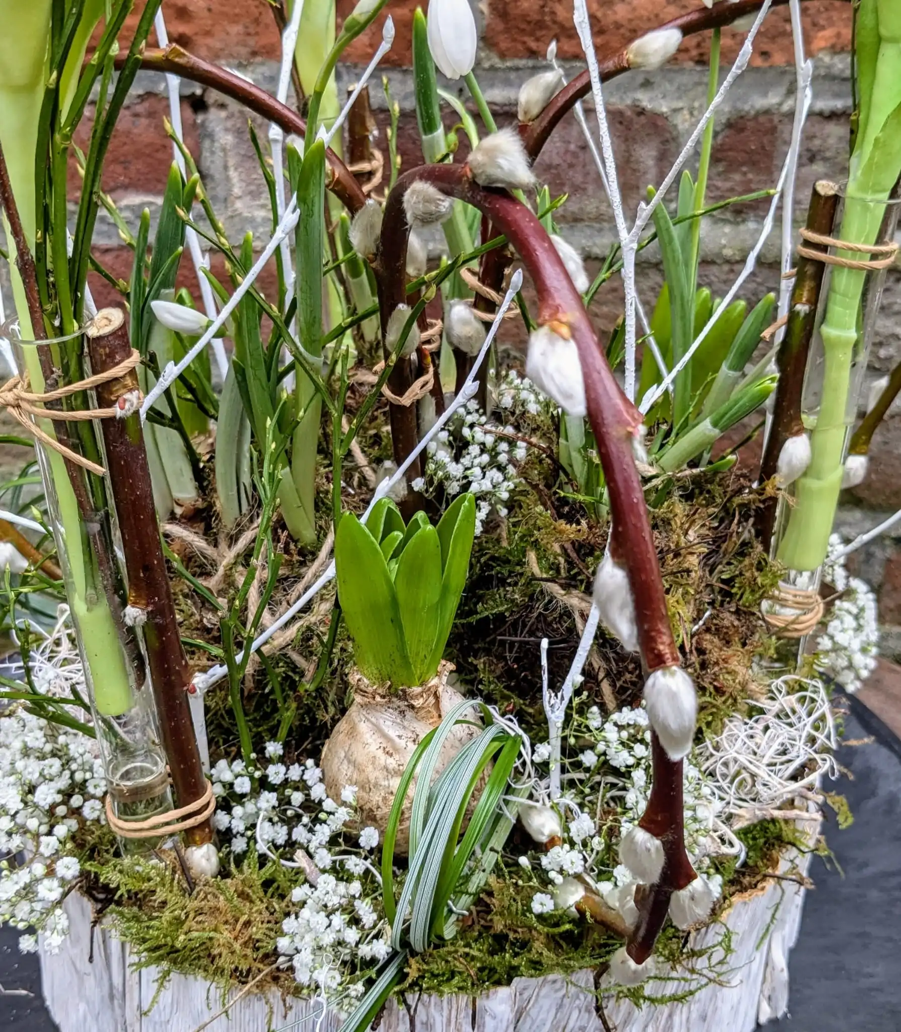 Een sfeervol lente-arrangement dat perfect is voor op de eettafel, een bijzettafel of als eyecatcher in huis. Het is niet alleen een lust voor het oog, maar ook een blijvend stuk waar je trots op kunt zijn.